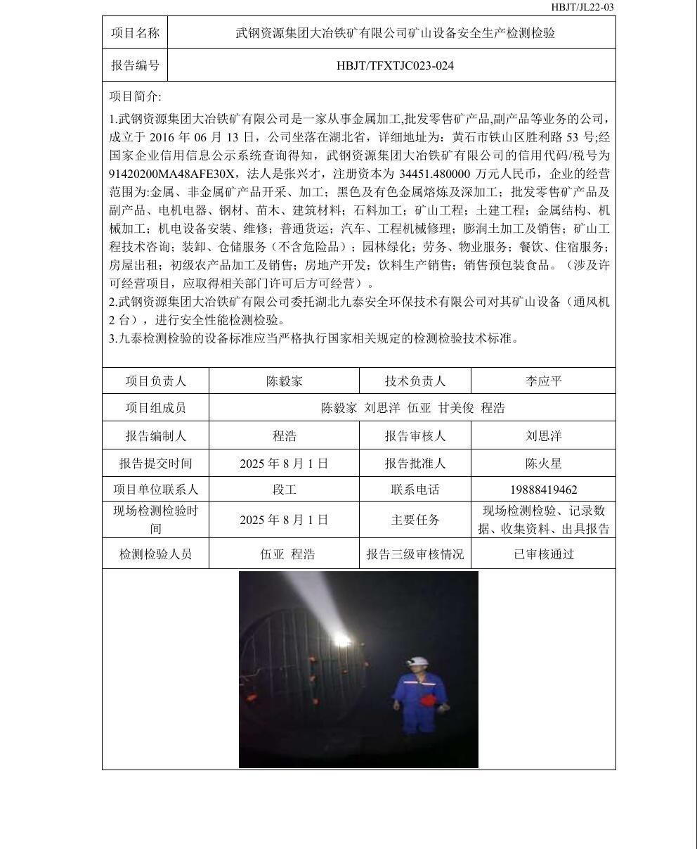上一篇:?鄂州市銅鑫礦業(yè)有限公司礦山設(shè)備安全生產(chǎn)檢測(cè)檢驗(yàn)